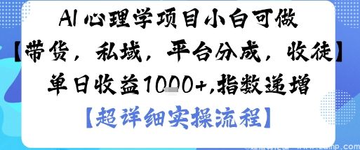 揭秘AI+心理学高变现项目,无需专业背景,小白30分钟上手,通过带货、私域、平台分成和收徒四大渠道实现日入1000+,附...