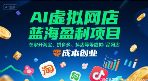 AI虚拟网店蓝海盈利项目,在家开淘宝、拼多多、抖店等虚拟品网店,零成本创业 通过本套课程的学习,能够学会虚拟店铺运营的全...