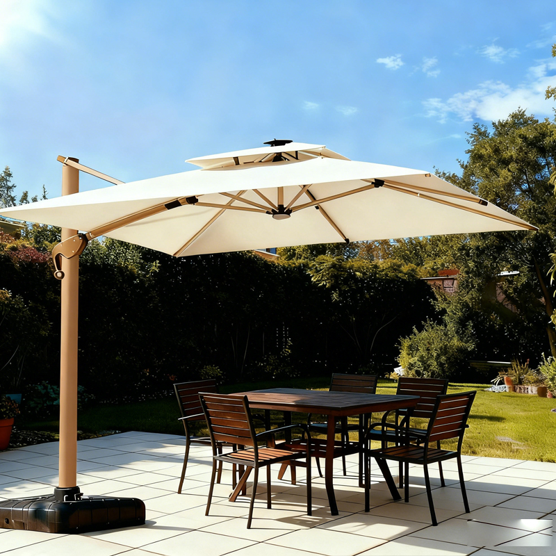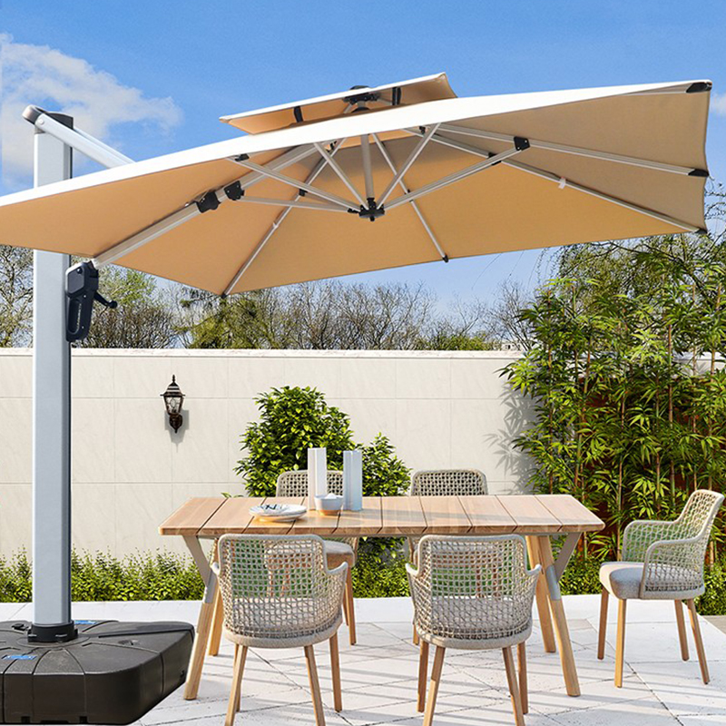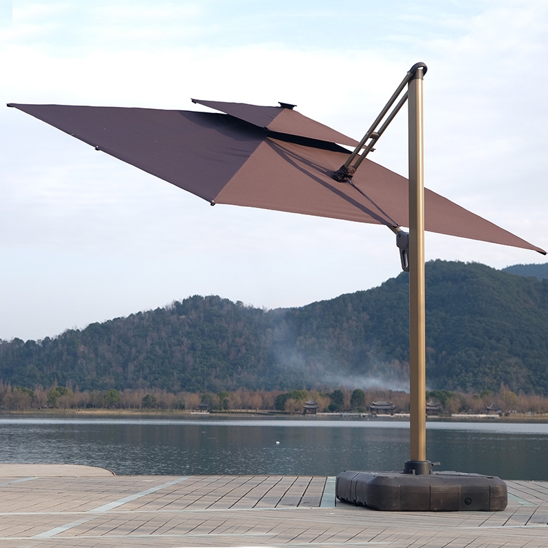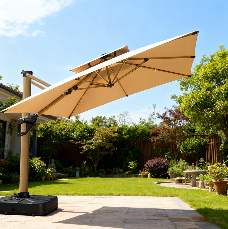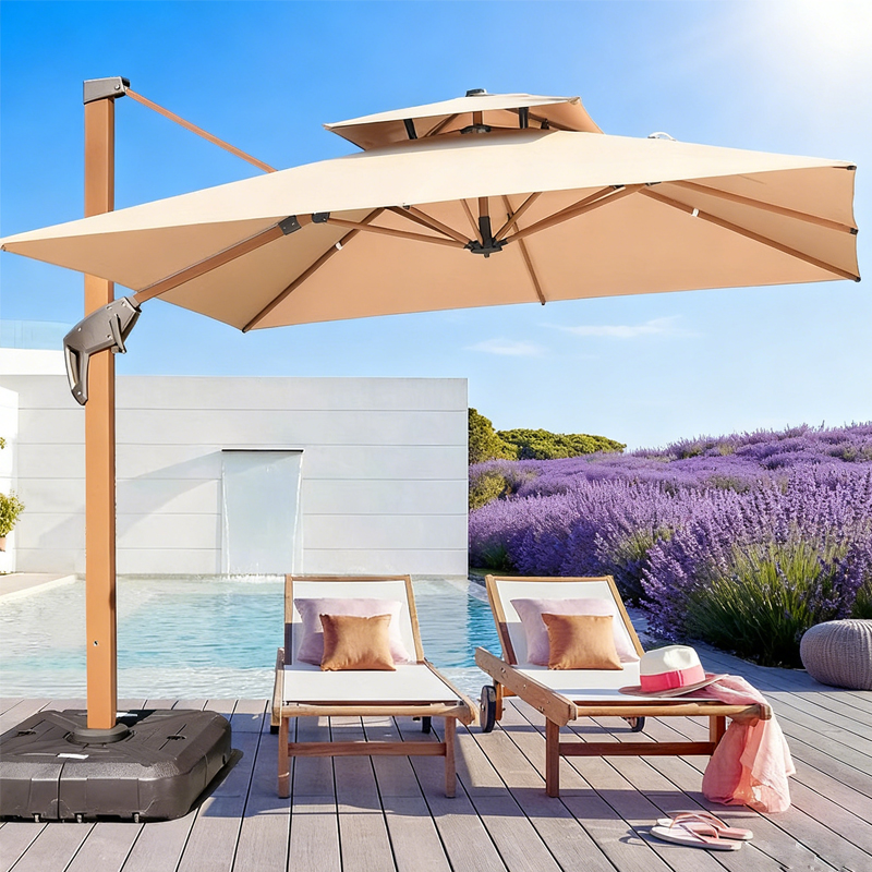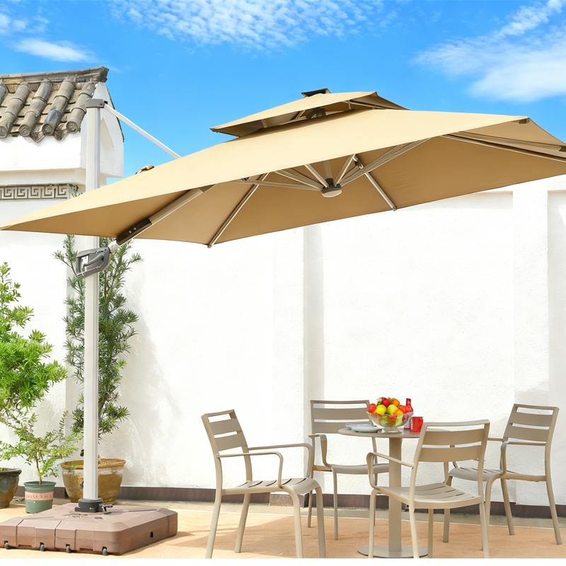 威尼斯双杆琥珀金【77铝柱铝把手】大别墅花园室外太阳伞