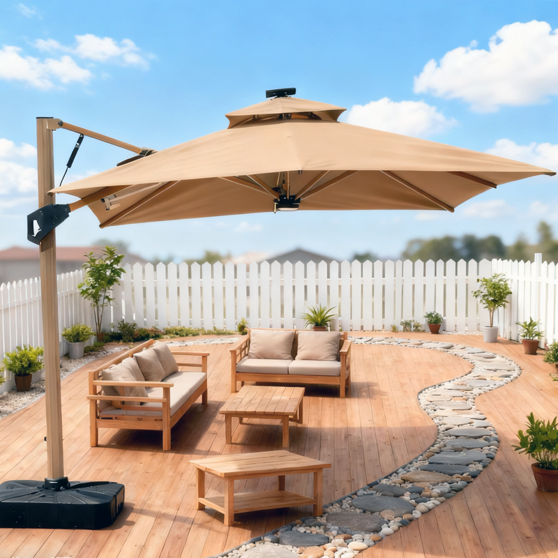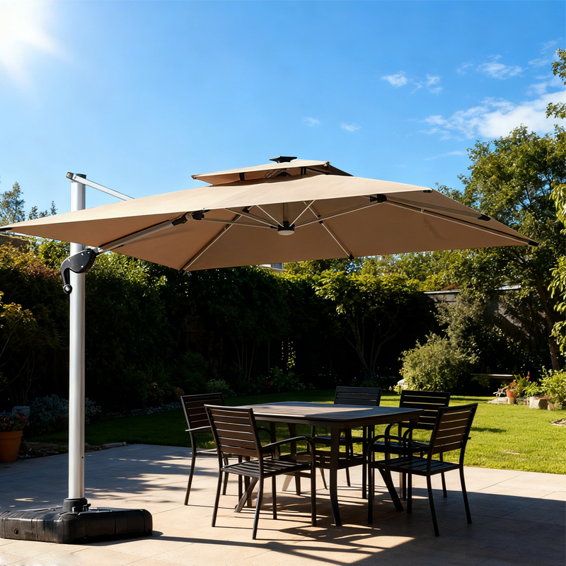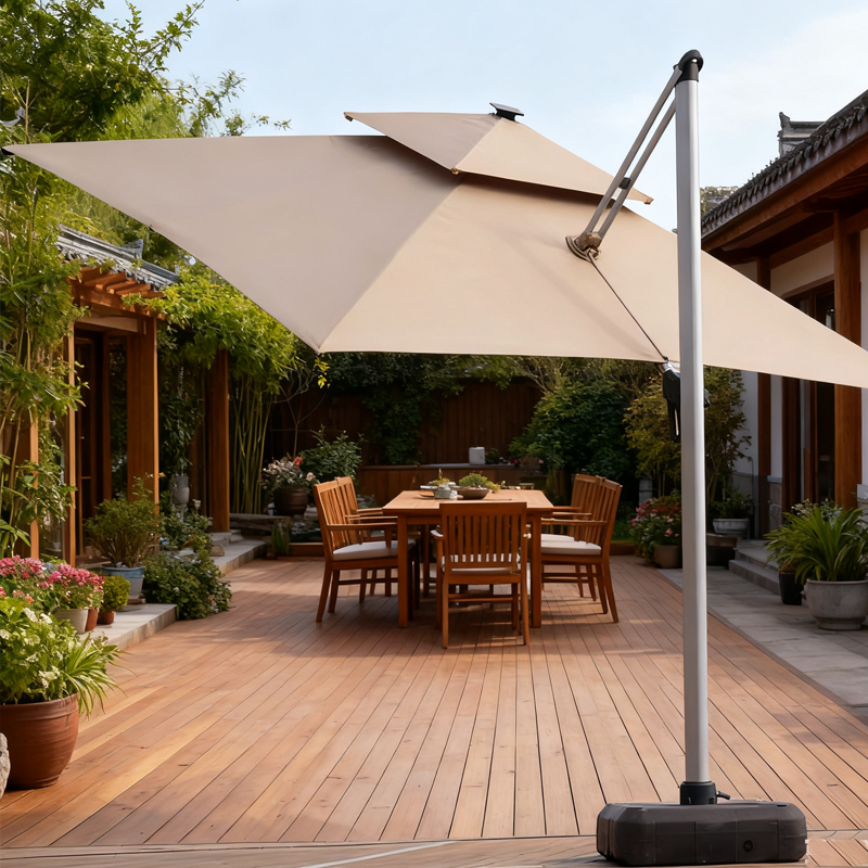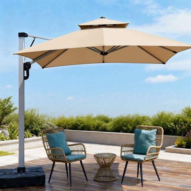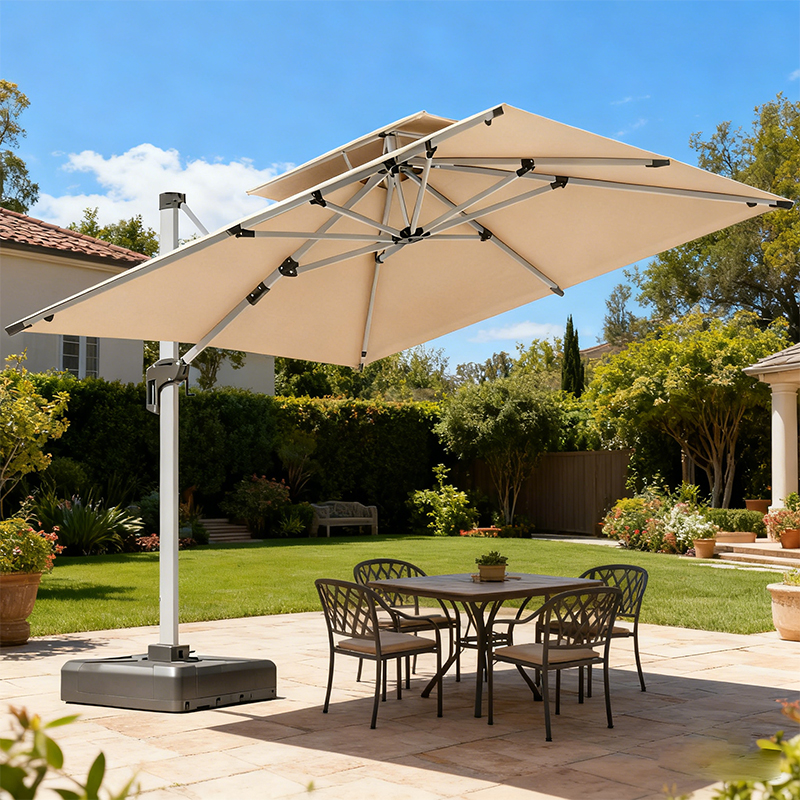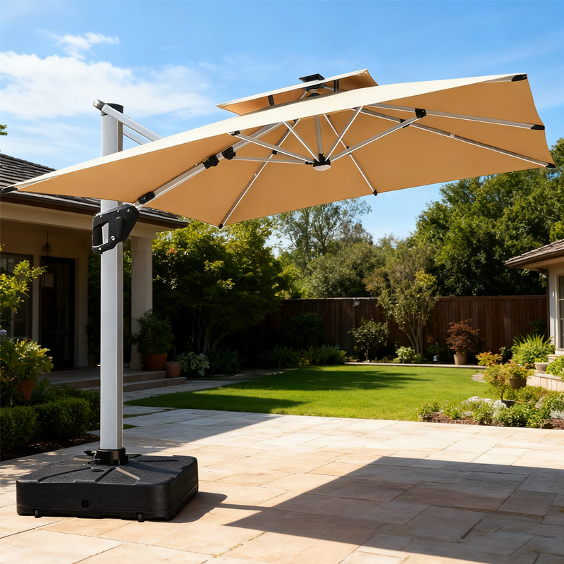 威尼斯双杆琥珀金【77铝柱铝把手】大别墅花园室外太阳伞