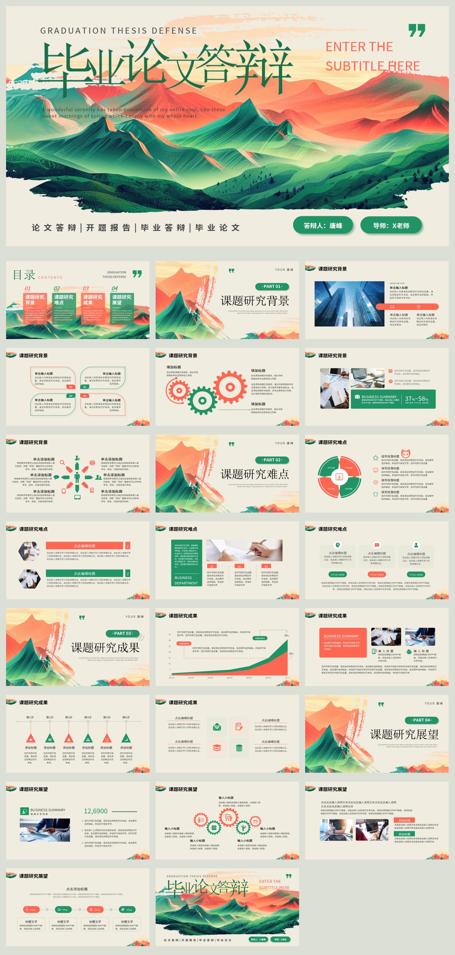 本作品内容为毕业论文答辩PPT模板免费下载3, 格式为 pptx, 大小18 MB, 页数为23,比例16:9, 请使用软件PowerPoint(2016)打开, 作品中主体文字及图片可替换修改,文字修改可直接点击文本框进行编辑,图片更改可选中图片后单击鼠标右键选择更换图片,也可根据自身需求增加和删除作品中的内容, 源文件无水印, 欢迎使用熊猫办公。 如认为平台内容涉嫌侵权,可通过邮件:tousu@zdlhp.com提出书面通知,我们将及时处理。